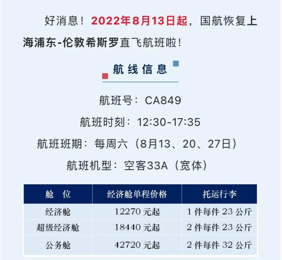 2022年国航恢复回国机票的公众号帖子(图源国航官微)