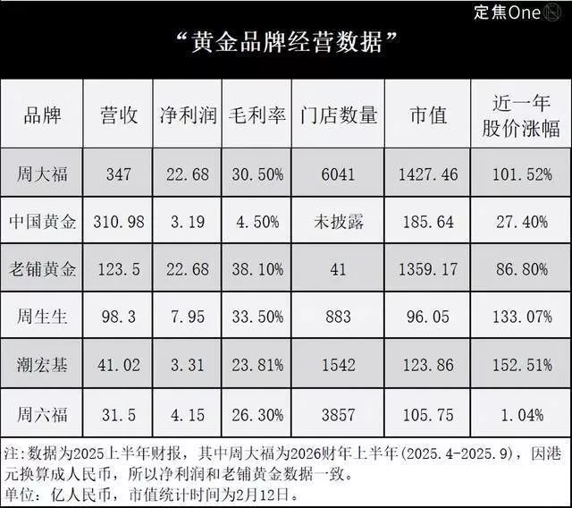 而老铺黄金只有41家门店,市值却已逼近坐拥超6000家门店的周大福,说明在当前市场中,规模并非决定估值的唯一因素,品牌定位、盈利模式与增长质量更受投资者关注。
