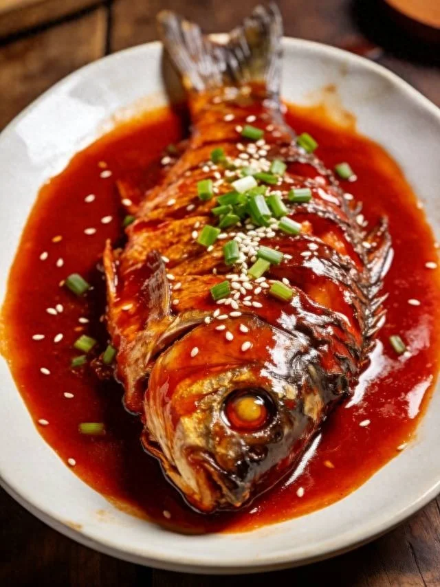 5. 开大火收汁,汤汁浓稠裹满鱼身,撒葱花即可出锅。