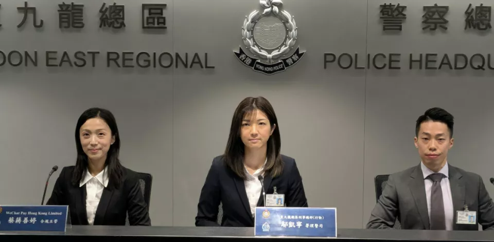 聚光灯下,负责通报案情的东九龙总区重案组第一队主管总督察邬凯宁,一身深色警服,一头利落短发,吐字清晰,语速沉稳,逐条介绍案情细节。