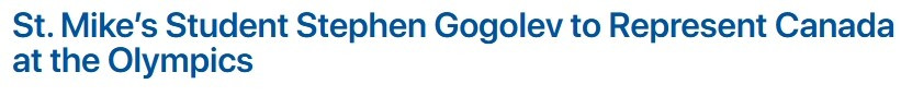 当大多数大学生忙着准备期中考试和辅导课时,多伦多大学圣迈克尔学院(University of St. Michael’s College)的学生Stephen Gogolev正在紧张地投入冬奥会的比赛。