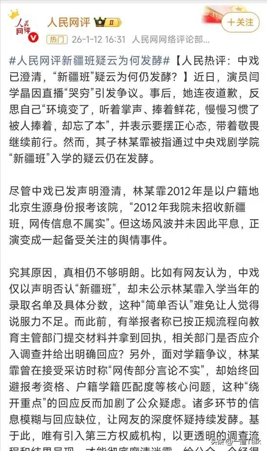 而且声明里只说了没有“新疆班”,对于林傲霏当年的高考分数、录取细节,一点都没有提及,越解释越模糊。