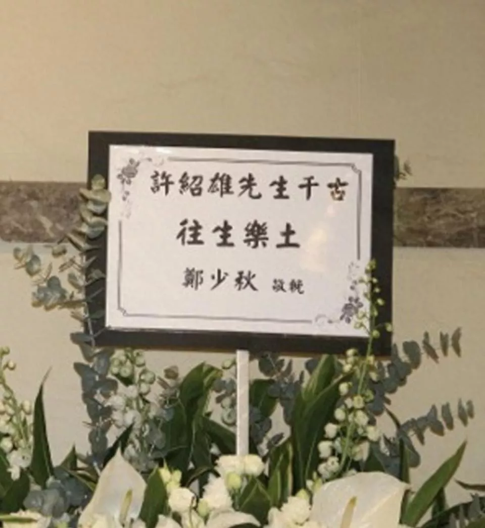 郑少秋送出的花牌成为他近年来唯一的痕迹。 纸板上打印的标准化悼词,与他昔日手写祝福的习惯截然不同。有媒体推测,此举或是妻子官晶华代为安排,以确保礼节性表态的同时,避免直接面对公众。