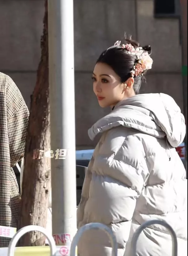 薛凯琪已经多次妆造齐全来彩排,她面色粉嫩如桃花,头上的发簪也好美。整个人被包裹在宽大的羽绒服里,小碎步走得好像一只企鹅。