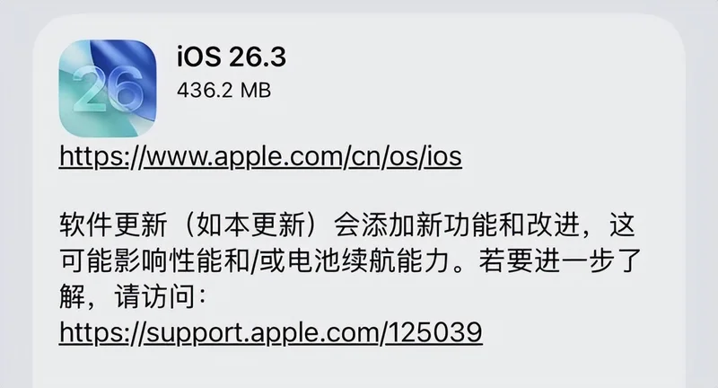 各位读者朋友们,你已经更新iOS 26.3了吗?更新后有没有遇到卡顿、续航崩掉的问题?