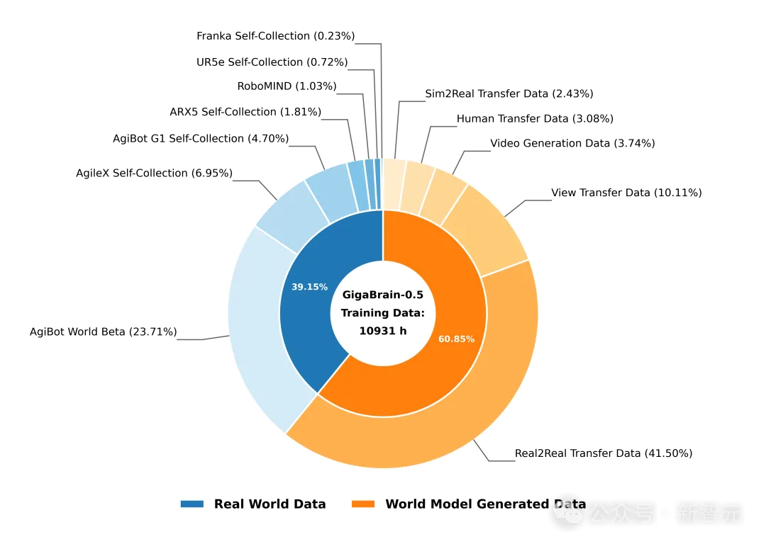 剩余 39%(4278 小时)源自真实机器人采集,确保策略在物理世界中的可执行性。
