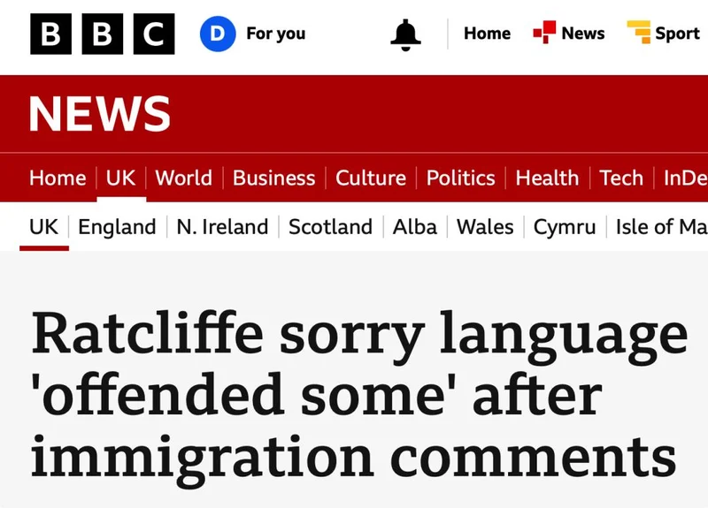 2月12日,拉特克利夫发布公开道歉说:“我很抱歉,我的言辞冒犯了英国和欧洲的一些人,并引起了关注。我依然认为,被良好控制和管理的移民问题对支持英国经济增长很重要。”