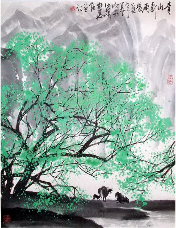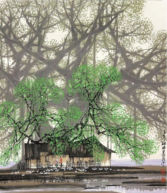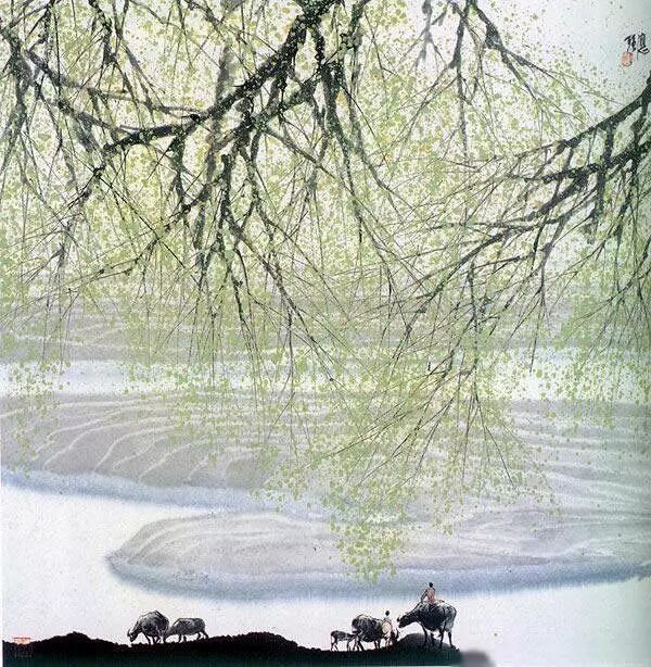 这是一组清新明丽的乡村情景水墨画,读这样的作品,能让人浮躁的心绪很自然的安静下来,沉浸于这画里乡村。。。