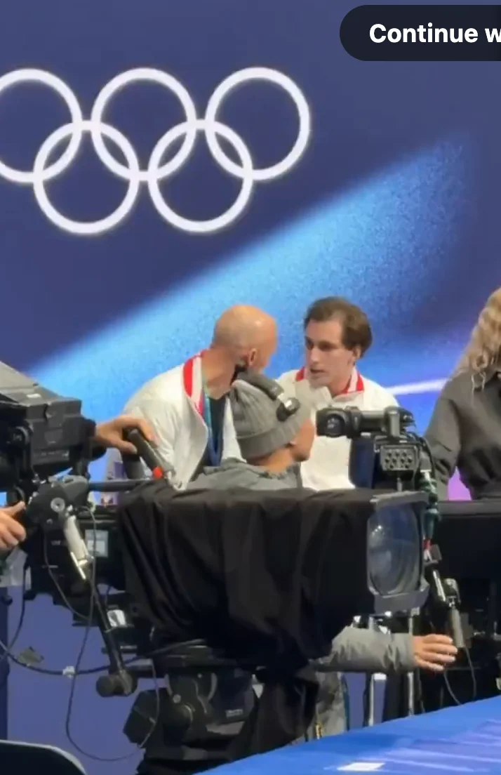镜头一切,同一个人又出现了,这次他又和美国选手坐在了一起。