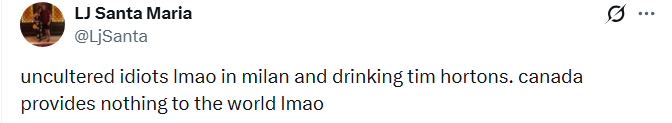 “也太没见识了,人在米兰还喝Tim Hortons,笑死了。”