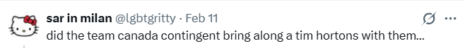一位网友调侃:“加拿大队这是把Tim Hortons都一起带来了吗......”