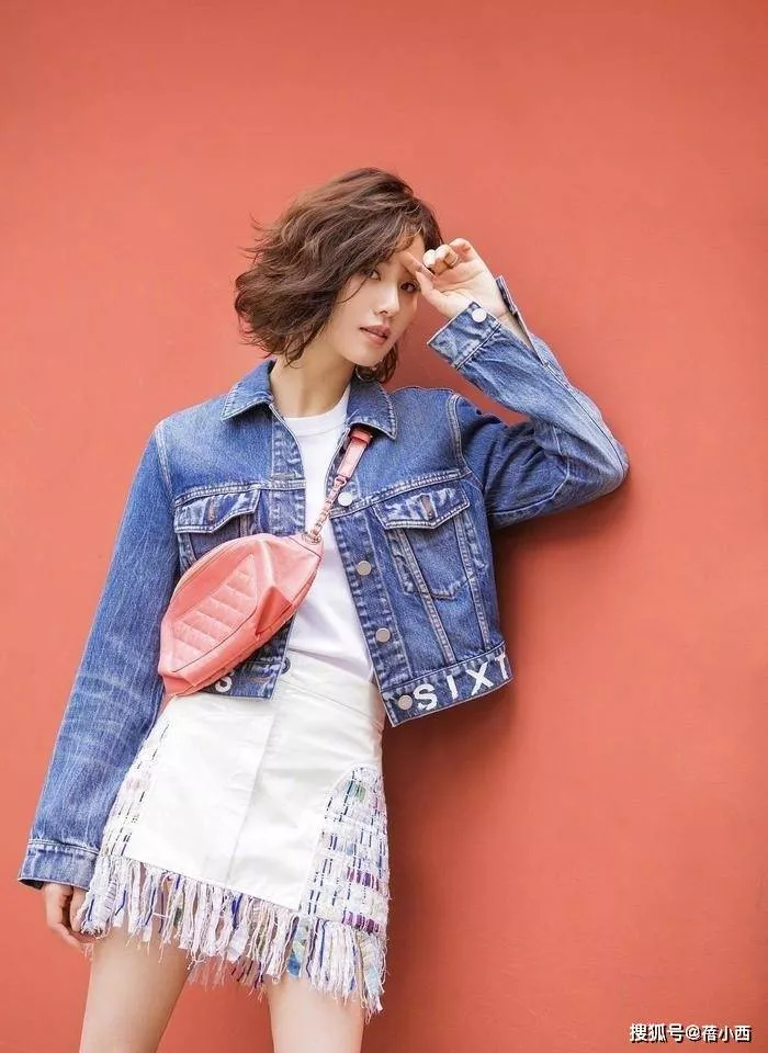 最让人惊艳的,还是她的短发造型,层次分明的波波头长度恰好落在耳下,发尾带着自然的蓬松弧度,修饰了下颌线条,也让脸部轮廓更显精致。利落的短发不仅弱化了她以往温婉的气质,更添了几分飒爽感,与牛仔外套的率性完美呼应。