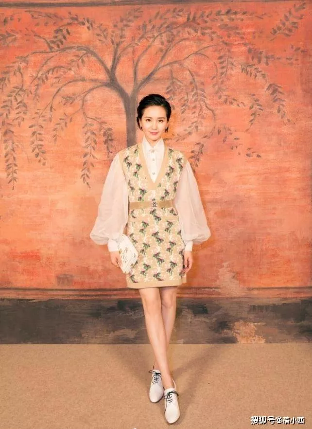 活动中,刘诗诗选择了一件米白色欧根纱衬衫,通透的面料带着朦胧的轻盈感,泡泡袖设计增添了复古少女感,翻领的细节则保留了一丝知性气息,让整体不会过分甜腻。