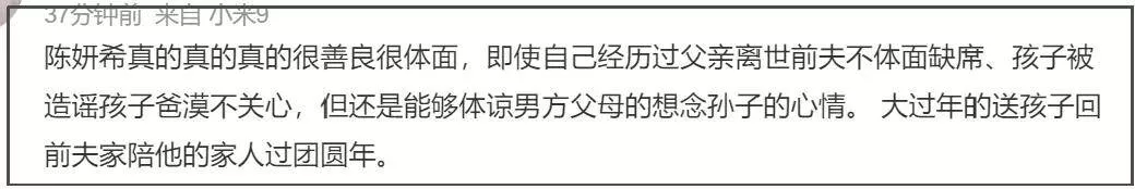 众多网友看到陈妍希将孩子送到陈晓老家过年的消息,纷纷夸赞她本人大气。毕竟,在婚姻存续期间,陈妍希每年都带着孩子回陈晓家过年,如今离婚了,还能豪爽地送孩子陪爷爷奶奶过年,相当体面。