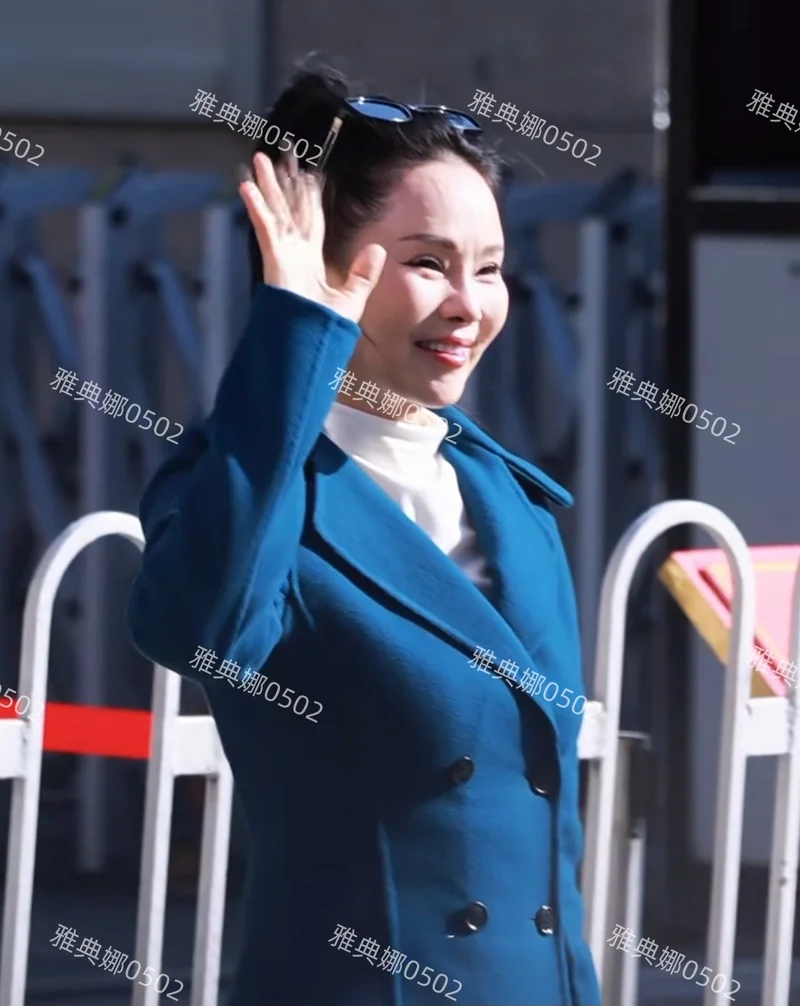 路透图里状态堪称“冻龄”,画面中,伊能静身穿宝蓝色长款大衣,搭配白色毛绒耳包,笑容明媚地向镜头挥手,冬日氛围感拉满,完全看不出年近六旬。