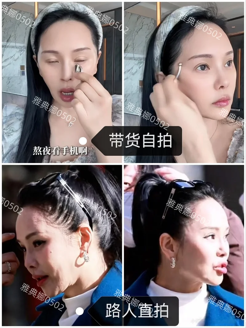 看她的脸,虽然皱纹不多,但是真的看起来很肿啊,与她平时的精修图和直播间里的形象,判若两人!