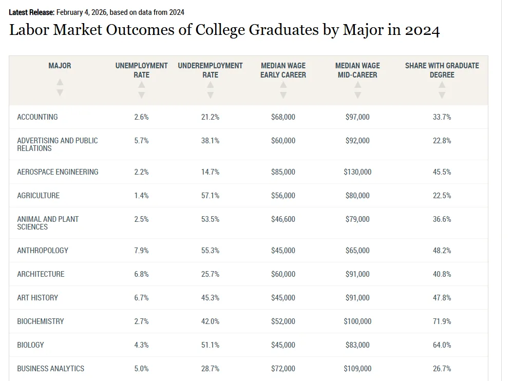 大学毕业生的就业前景因专业而异,而失业率最高的领域并不总是公众的传统认知。纽约联邦储备银行(New York Federal Reserve)最新发布的分析报告,评估了73个大学专业应届毕业生在2024年的就业状况,揭示出专业选择与就业表现之间的明显分化。
