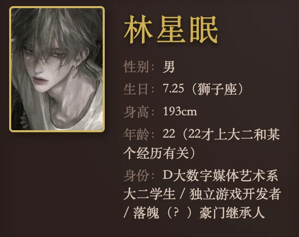他拥有栗色的短发和浅棕色的眼睛,是标准的豪门继承人,住在香港带私人泳池的独栋别墅里;性格却出奇地可爱,他给自己养的两棵绿萝都取了名字,一棵叫“开朗向日葵”,另一棵叫“忧伤豌豆”。