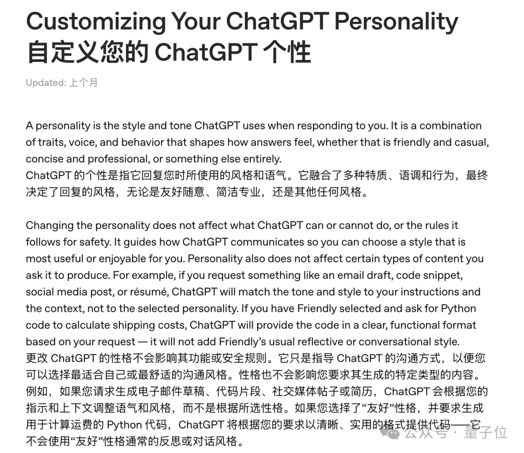 用户可以自定义ChatGPT的回复方式,选择不同语气、性格等。