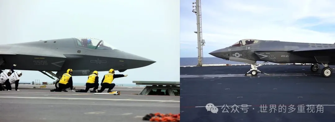 中国海军发展歼-35时,并没有加上那么多需求,最起码没有垂直起降、内置大尺寸弹药这两样(歼-35的弹舱也比较浅)。