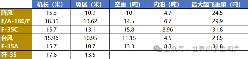 看到没,F-35C比F/A-18E/F短一大截,翼展更小一点,竟然还要更重。