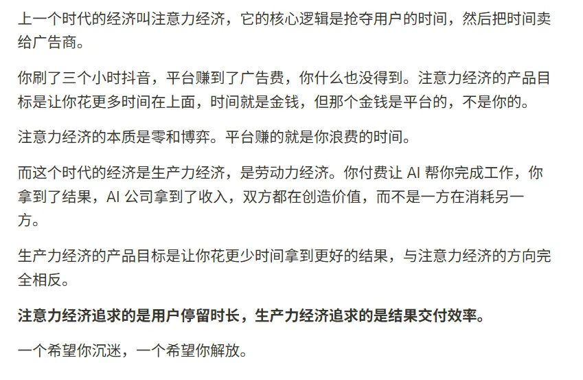 过去二十年,所有软件公司都在研究同一个问题:怎么让人用得爽。界面好不好用、交互顺不顺滑、推送够不够及时,全是为了让人离不开你。