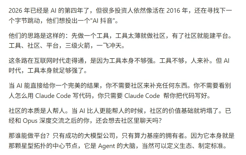DAU 过时了。SaaS 过时了。注意力经济已经死了。工具到平台的路径走不通了。"AI 应用"这个词是错的。"出海"这个词也是错的。
