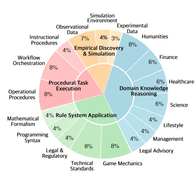 规则系统应用(Rule System Application):包括游戏机制、数学形式体系、编程语法、法律法规和技术标准五个子类。