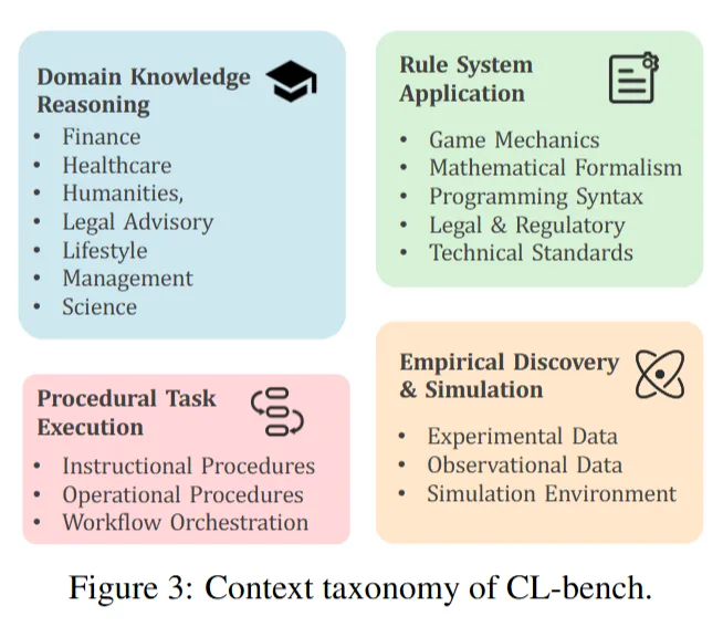 这四类场景基本覆盖了人类在现实工作中遇到的主要学习情境,而CL-bench又把这些真实场景搬进了评测体系。