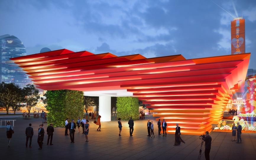 位于牌楼中央的“红棉飞马”大型雕塑造型,以行云流水的书法“马”繁体汉字为骨架,66朵金红木棉簇拥其上,塑造了独特的马年标识形象,凝练出“红棉花开·飞马亮翼”的动人画卷。色彩体系上,牌楼主体采用了金色、传统正红、橙红色、深红色逐级渐变的效果,制作工艺融合了现代软膜幻彩灯箱、流动投光光带等前沿照明技术。鹏翼造型的每层飞檐,均嵌入了可编程流动灯带,辅以智能控制系统。实现了白天庄重典雅、夜晚华光四溢的视觉效果,既传承了传统牌楼宫灯意向,又展现了天河领先的创新科技和智慧城区的澎湃心跳。