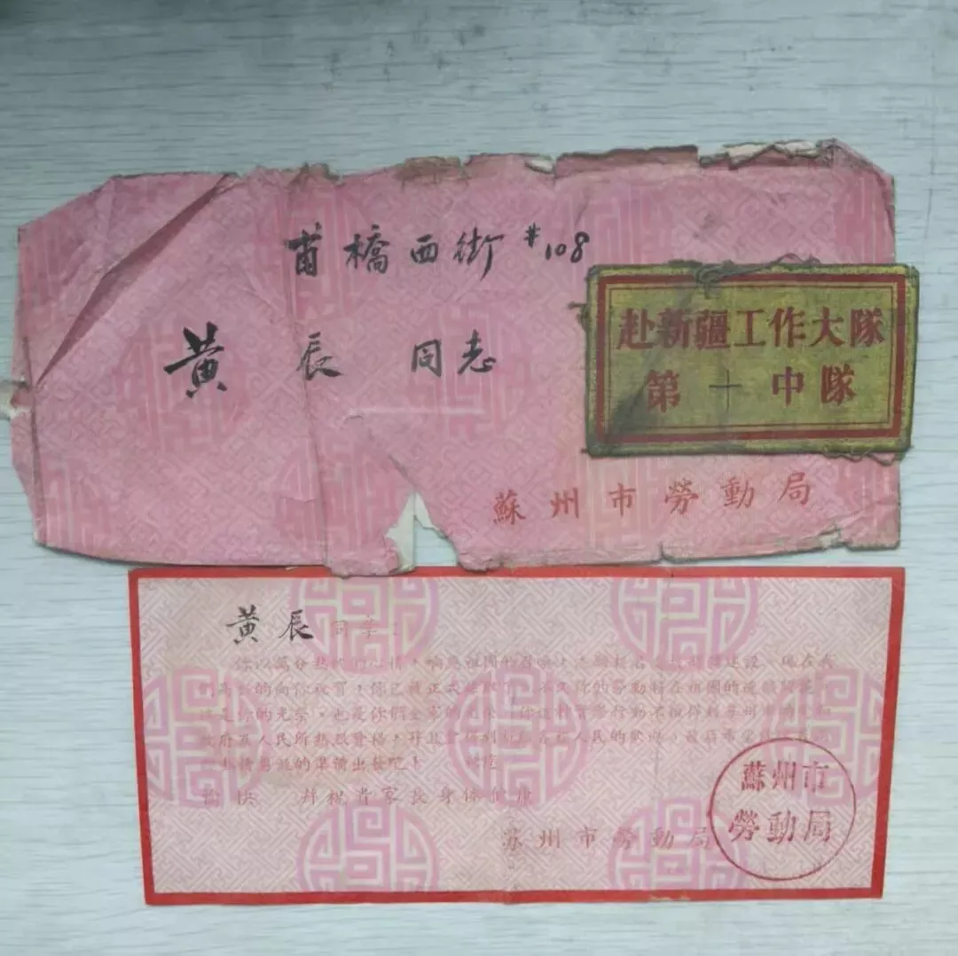 两个月后,1956年10月,政府在苏州招聘青年支援新疆,初中毕业生也符合资格,黄辰报名获准。沈妻为他购置用品,打点行李送他上了火车。路过西安时,黄辰曾去看望过母亲。