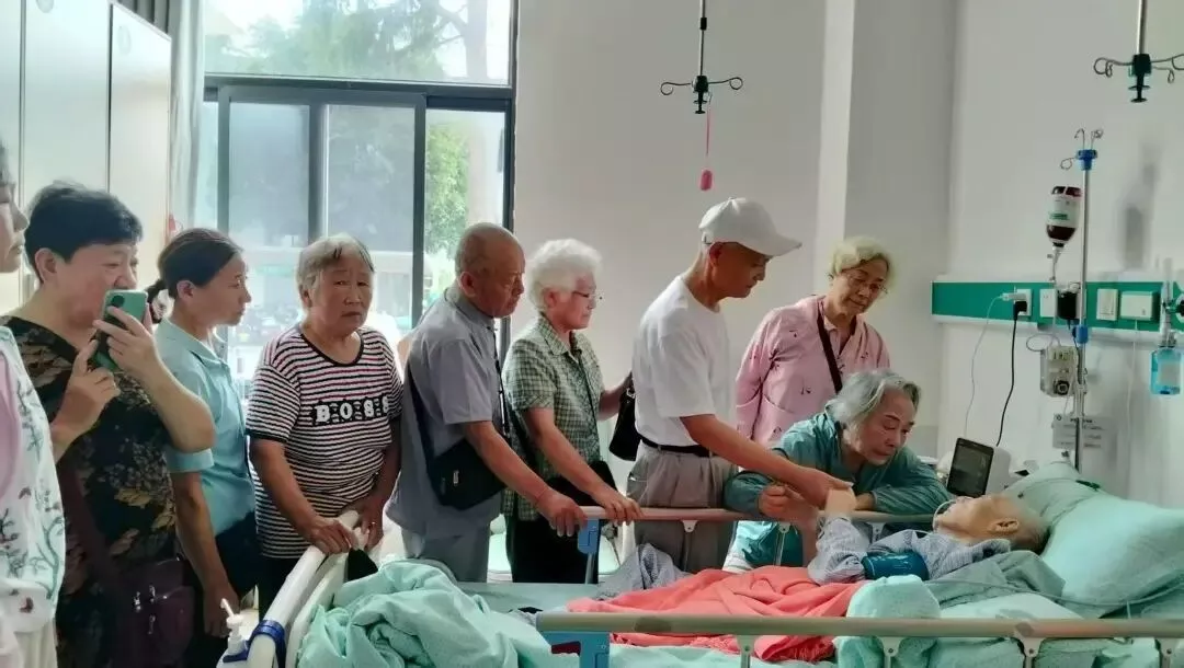 2025年9月5日,黄政的弟妹们在病房探望黄政。