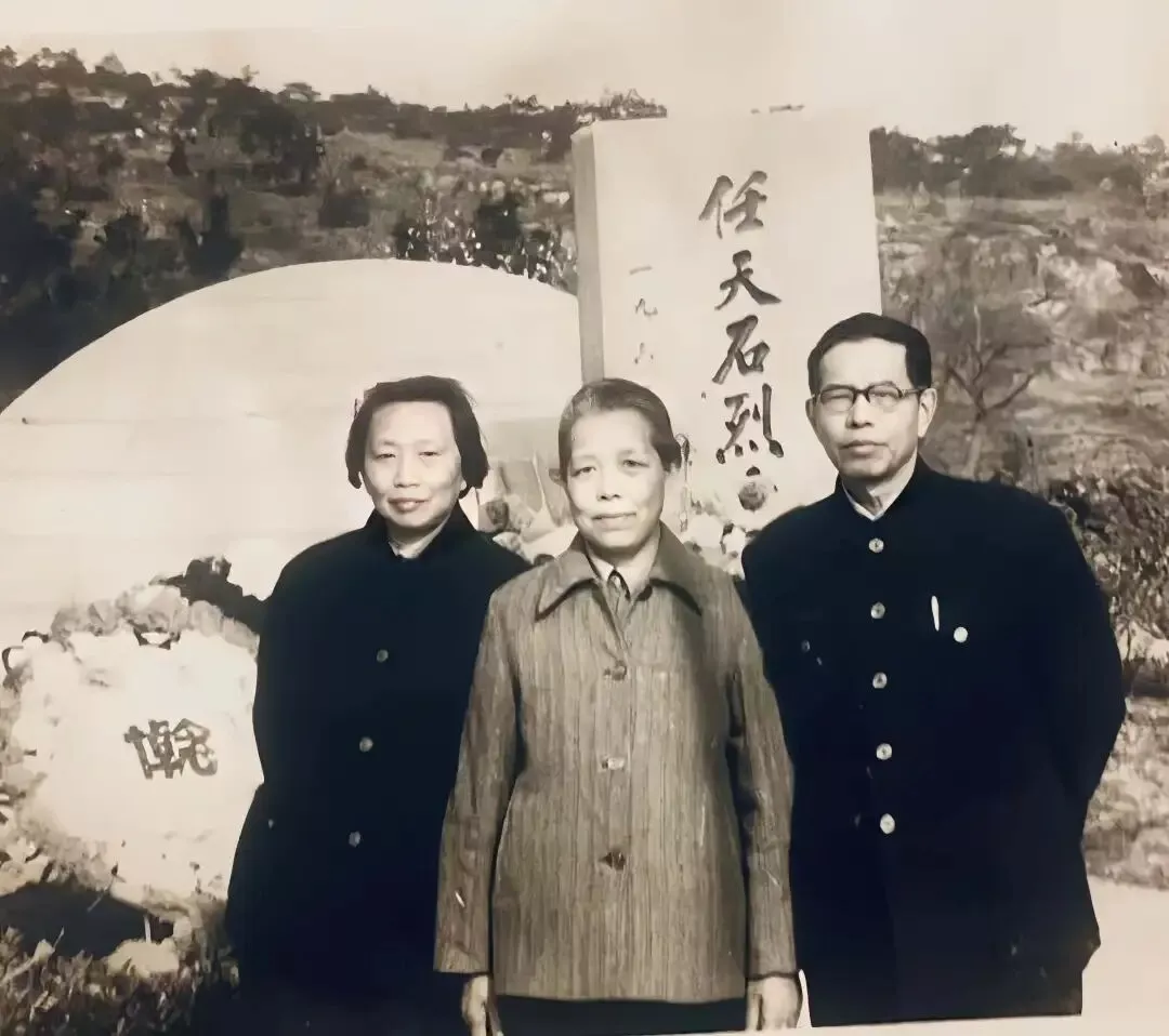 张素(1913-1989)晚年与友人在任天石烈士墓前(居中)。
