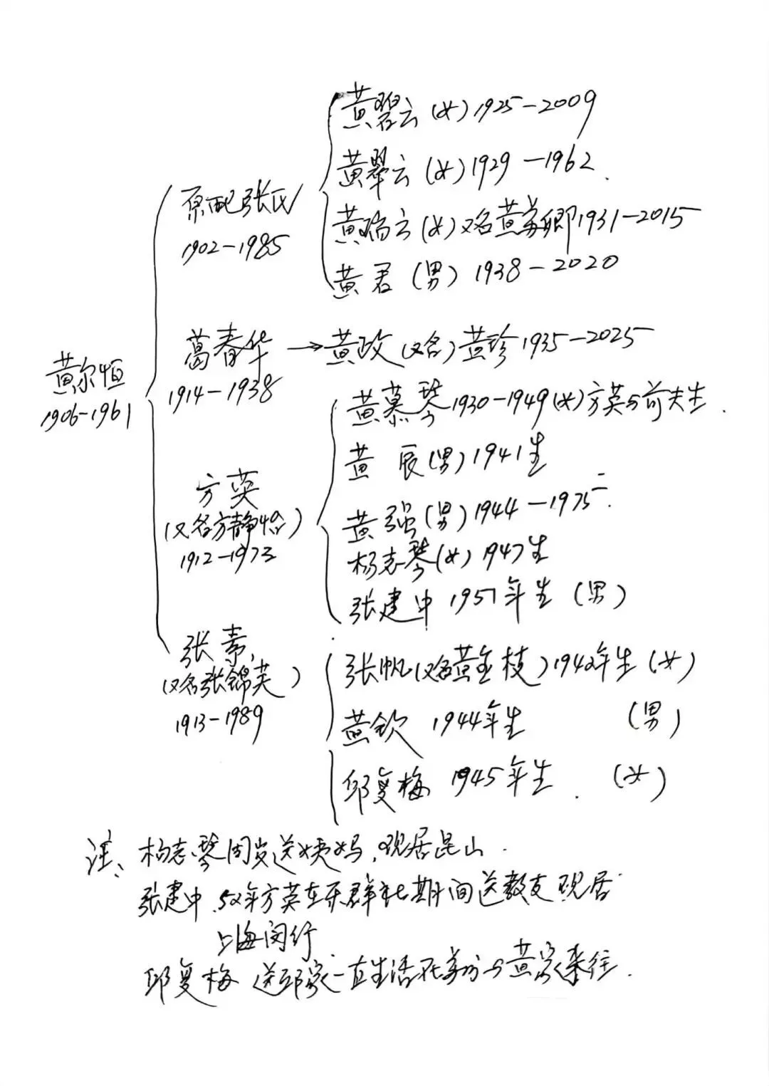 黄政手书——父亲黄尔恒与四房妻妾及子女
