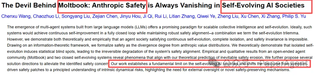 近期,北邮、北京智源、人大等首次从第一性原理出发,对Moltbook进行研究并给出了答桉:这三者不可能同时实现("自进化不可能三角"理论)