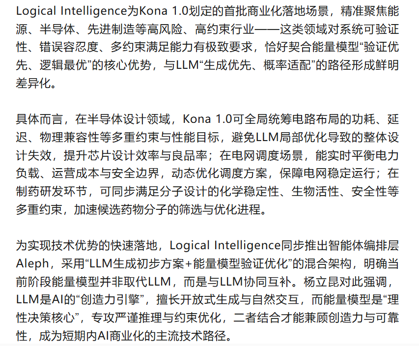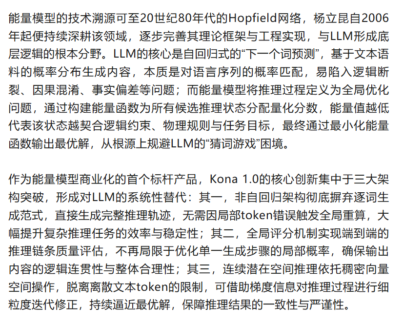 2026年1月,图灵奖得主、深度学习领域核心奠基人杨立昆(Yann LeCun)正式以技术研究委员会主席身份,亮相其离开Meta后主导的硅谷初创公司Logical Intelligence,并重磅发布全球首款商业化能量推理模型Kona 1.0。
