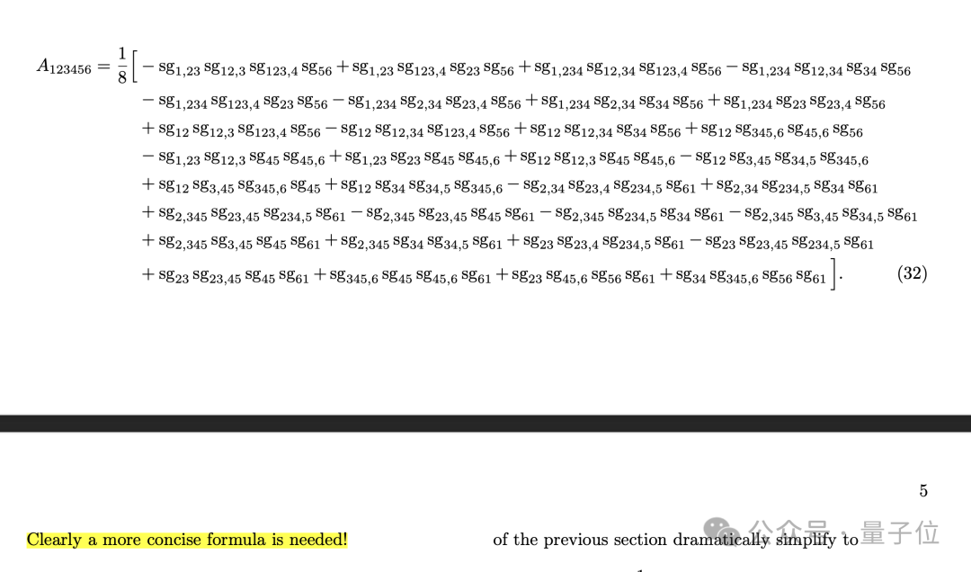 3个粒子时只有1项,4个粒子时2项,5个粒子时8项。到6个粒子时,论文中写出的一般表达式已经有32项,全部是各类符号函数的乘积组合。