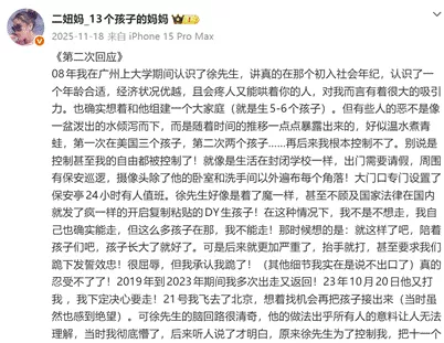 2025年11月,多益网络董事长徐波的前女友“二妞妈_13个孩子的妈妈”(网名)在微博发文称与徐波生育了13个孩子,目前正争取两个亲生女儿的抚养权。此外,她提到自己和孩子都曾被徐波家暴,且徐波另有三百多个非婚生子女,这些小孩分几处居住,主要由保姆照顾,其生活状况堪忧。随后,该女子与徐波在网上多次论辩,引起网友关注。