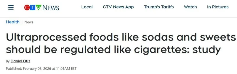 最近,一项发表在同行评审医疗期刊 《米尔班克季刊》(The Milbank Quarterly) 的最新研究提出惊人观点:含糖汽水、甜食等超加工食品(ultraprocessed foods)应当像香烟一样受到严格监管。
