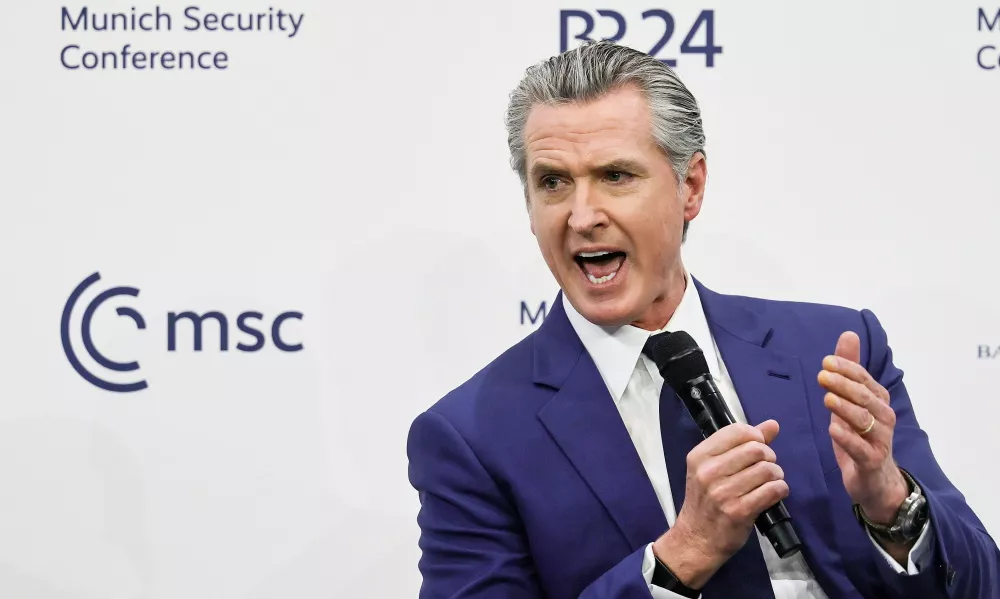 2月13日,美加州州长纽森在第62届慕尼黑安全会议上发言。ICphoto
