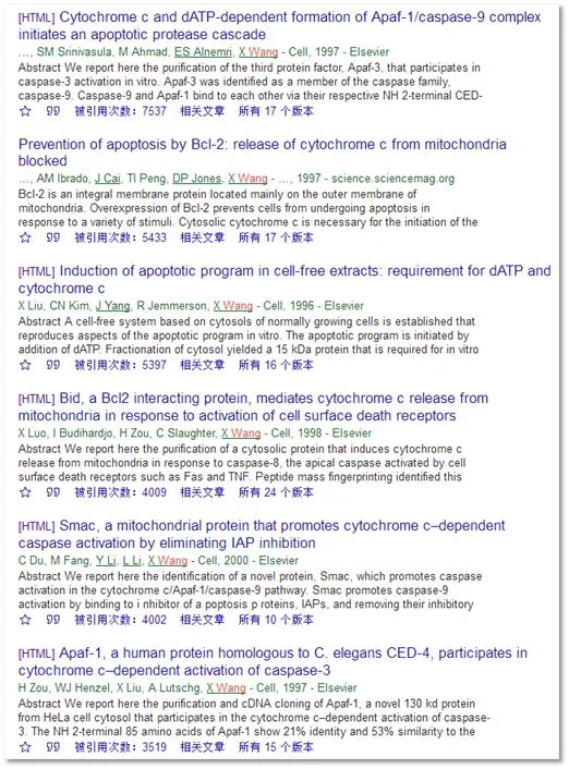 他的研究成果接连发表在《科学》《自然》《细胞》等国际顶尖期刊,引用率居高不下。比如 1996 年发表在《细胞》上的《Induction of apoptotic program in cell-free extracts: requirement for dATP and cytochrome c》,被引用次数达 5397 次;1997 年发表在《细胞》的《Cytochrome c and dATP-dependent formation of Apaf-1/caspase-9 complex initiates an apoptotic protease cascade》,引用次数更是高达 7537 次,这些高引用率的论文充分证明了他研究成果的重要性和影响力,他也因此成为细胞凋亡领域炙手可热的学者。