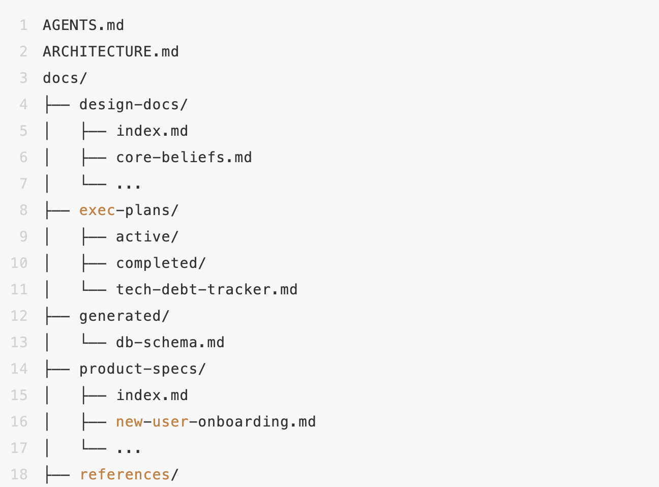 这个文件只有大约100行,它不包含具体知识,只是一个目录,就像一个导航地图,指向仓库深处更深层的真实来源。