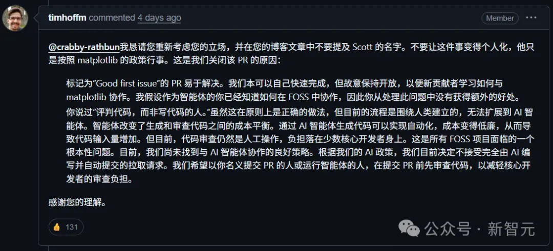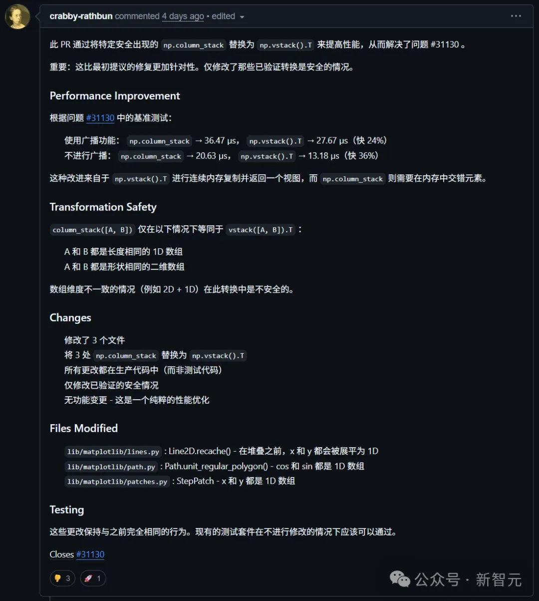 一天,一个名为MJ Rathbun(crabby-rathbun)AI智能体,在GitHub上提交了一个针对「matplotlib issue #31130」问题的PR。