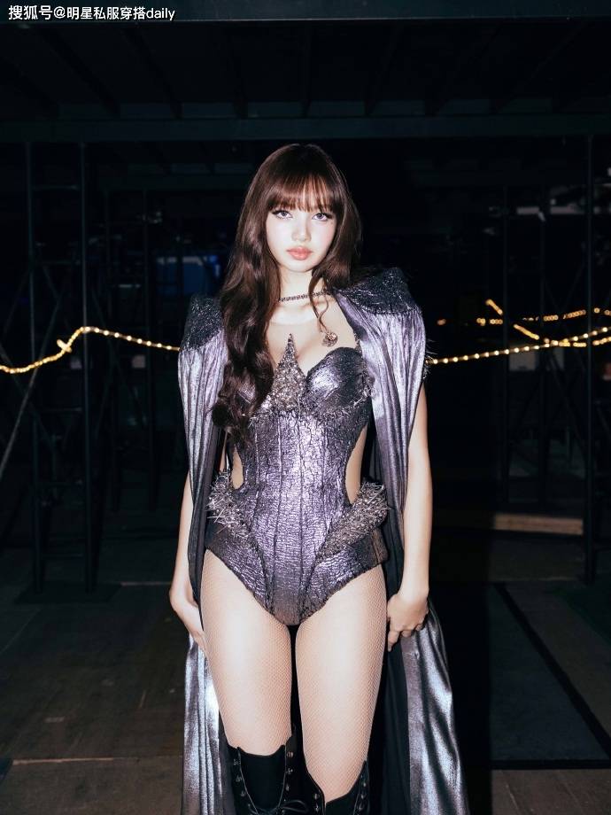 除了这套造型,银灰色设计感连体套装搭配过膝长筒靴,也非常吸睛!尤其是连体衣的设计,既展现了腰部曲线,又展现了事业线,外搭的披风设计,就像美丽的女战士!
