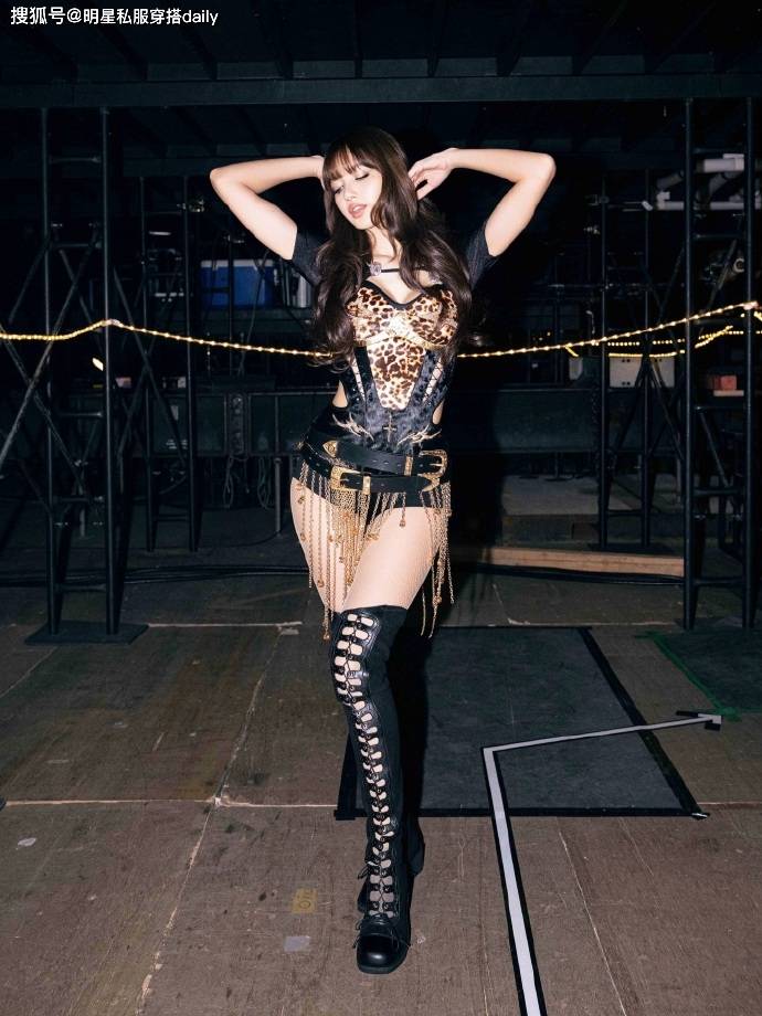 在穿搭上,她喜欢在舞台上大秀好身材!比如豹纹连体衣搭配金属装饰的腰带,外搭一件皮草大衣,既展示身材,又展示时尚造型!