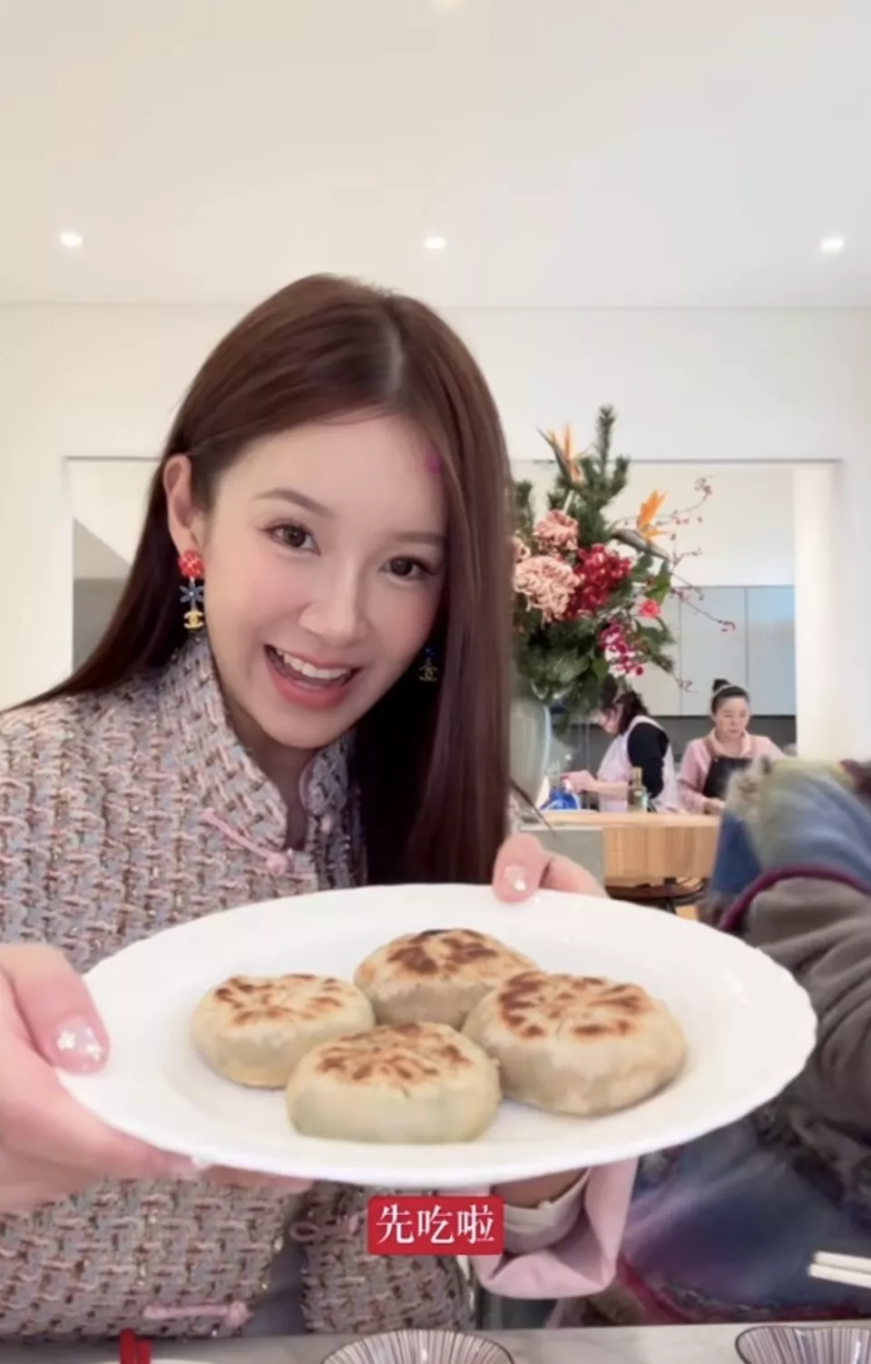 张子萱妈妈做的馅饼,薄皮大馅的、看着就很有食欲。从背景来看,张子萱家里还有保姆阿姨,子萱妈妈只是偶尔下厨,并不会经常围着厨房转。