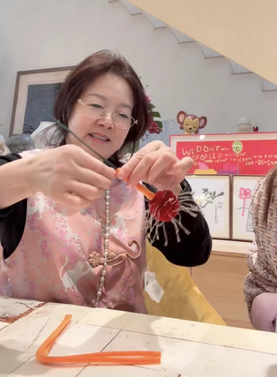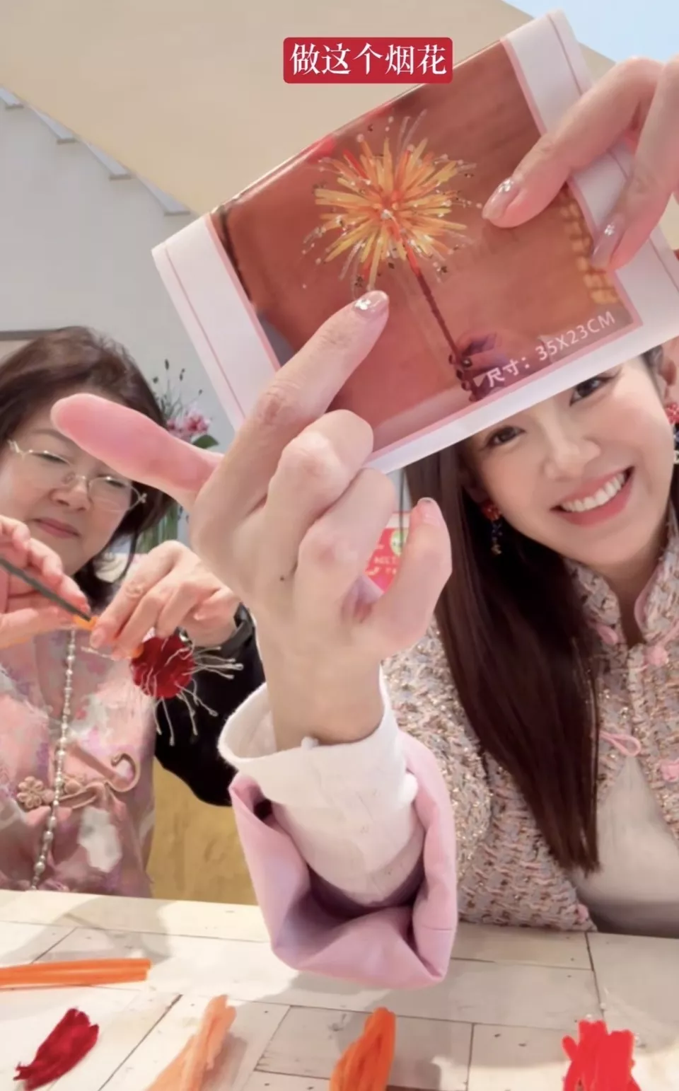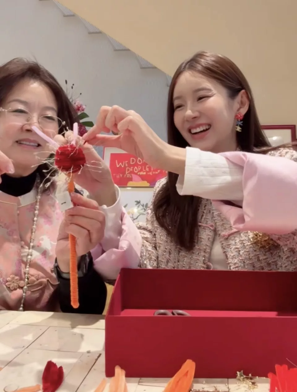 张子萱做了很多有增添年味的事情,比如她和妈妈一起做烟花。是那种很流行的扭扭棒做成的烟花,还以为只有小朋友玩这个呢,没想到张子萱母女俩玩得也很起劲。