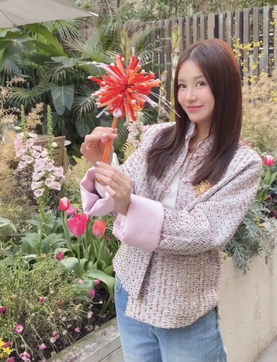 镜头下,张子萱穿一件新中式的外套,那种带着亮闪元素的设计,有一种星光熠熠的美,衬得她皮肤更白皙了。