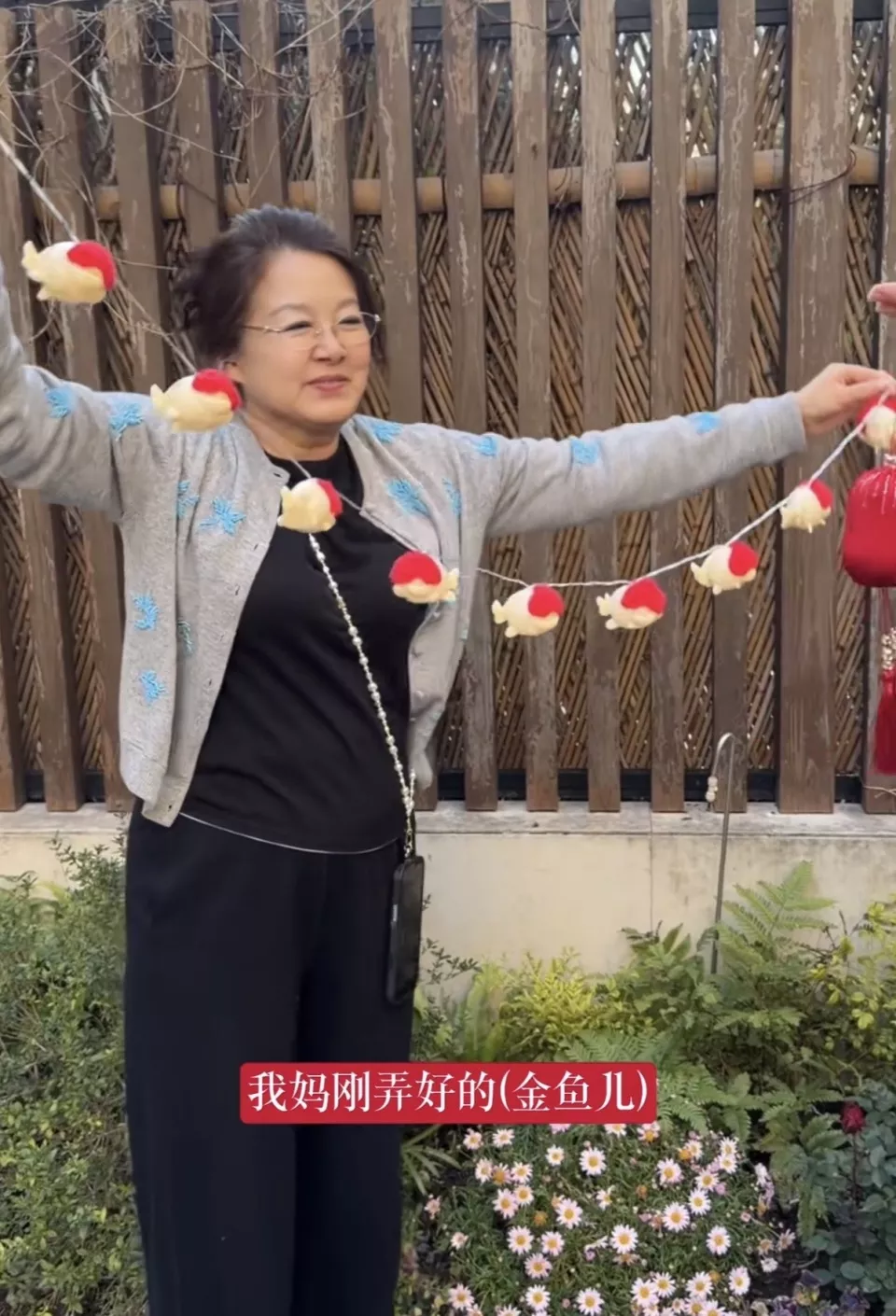 在大别墅的院子里,张子萱妈妈拿出来自己做的小鱼,也要挂起来。这样的子萱妈妈好慈祥,她的眉眼里都是温柔。张子萱的性格和长相,真是完全遗传了妈妈。
