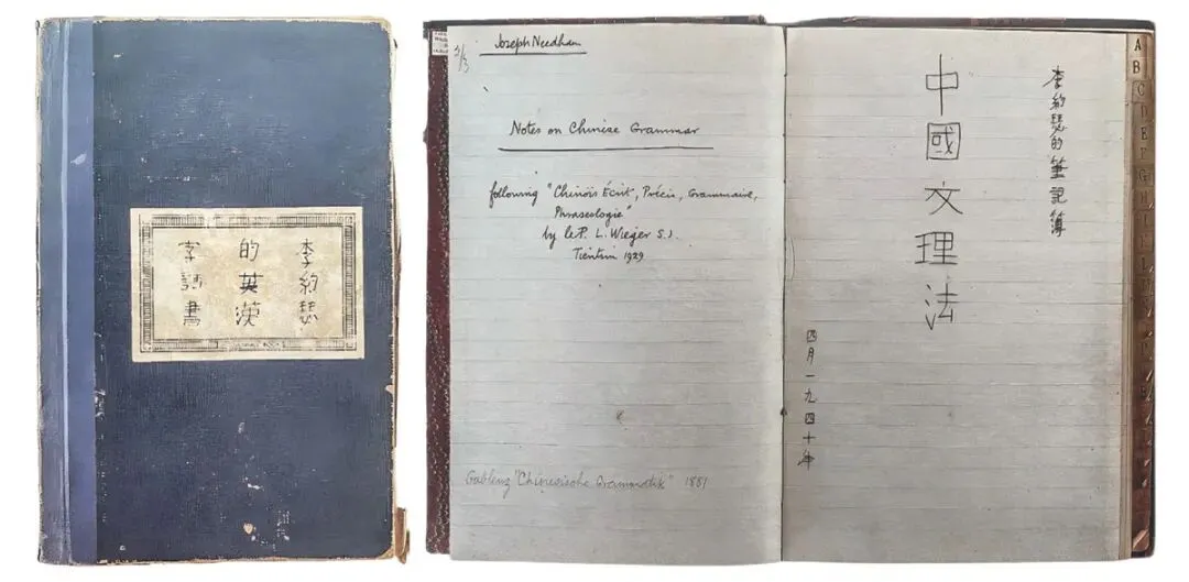 李约瑟虽然没有接受过学院式的汉语教育,但他凭借着“愚勇”的刻苦精神和善用科学方法的灵活头脑,领悟了中国古老会意象形符号的奥秘。李约瑟从读音入手学习汉语,他使用剑桥大学汉语教授威妥玛(T. Wade)和翟理思(H. Giles)创制的 “威妥玛-翟理斯式拼音”来标识汉字的读音,并大胆使用化学方法研究分析汉字的造字规律。他把汉字看作是化学分子,而部首为原子,整个汉字系统便是由214个原子用各种排列组合法构成的整体,他有效地运用分子和原子的概念帮助理解汉字字义和记忆汉字的字形[5]。外加剑桥汉语教授哈隆(G. Haloun)和鲁桂珍等人的加持,在书写和阅读古文献方面,李约瑟更是如虎添翼,汉字和汉语水平均达到了满足研究中国科技史的水平。中国科技史家凡见过李约瑟中文学习笔记者无不心生敬佩,有按读音分类总结的《李约瑟的英汉字话书》、有记录词组短句类的《行字典》、有繁简字参考的《中文简繁字对照表》,另外还自编《汉英字典》和《中国文理法》等。或许正是有了对中文的深度理解,李约瑟给自己取别号时才得心应手,而这也恰是戈革为李约瑟治印的缘起。